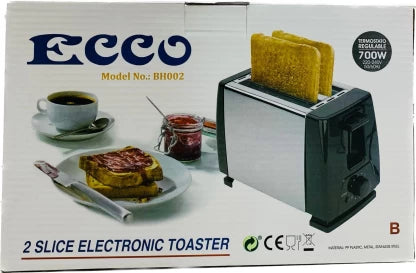 The Toast has a two-slot toaster, its powered at 700 watts. and it is easy to remove bread without burning fingers Features: - 2 slice electric toaster. - 6 Browning controls allows toasting from light to dark. - Cool touch did panels. - 700 watts. - Compact design. - Durable. What's in the box 1 x 2-Slice Electric Toaster