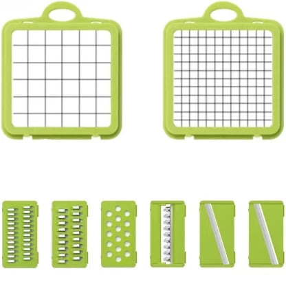 STREAMLINED FOOD PREPARATION】 The 14-piece vegetable chopper is purpose-built, meticulously designed to streamline and enhance the process of food preparation. Large cubes, Small cubes, Thick silk, Filter egg whites, Sprial blade, Thin fink, Slice, Pattern, Grinding mud, Ribbon blade. 【ADVANCED BLADE FEATURES】 Equipped with 420 steel blades known for their durability and sharpness, it excels in cutting, chopping, and dicing vegetables and fruits.